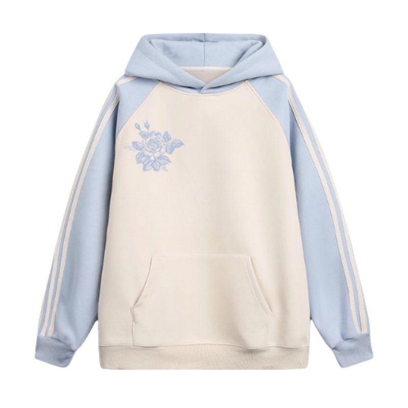 Blue Panel Contrast Loose-Fit Hoodie
